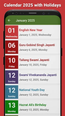 Hindi Calendar 2025 with Information like Holidays, Festivals and many more...