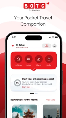 Turn travel planning into a breeze with the SOTC Mobile App! Explore & Book: Browse stunning destinations, curate custom itineraries and book your dream holiday with SOTC. Manage Bookings: Access all your trip details, travel documents and visa updates in one place. Seamless Payments: Make secure payments and track your transaction history effortlessly. Enhanced Experience: Share feedback, access travel tips and request itinerary changes - all on the go!